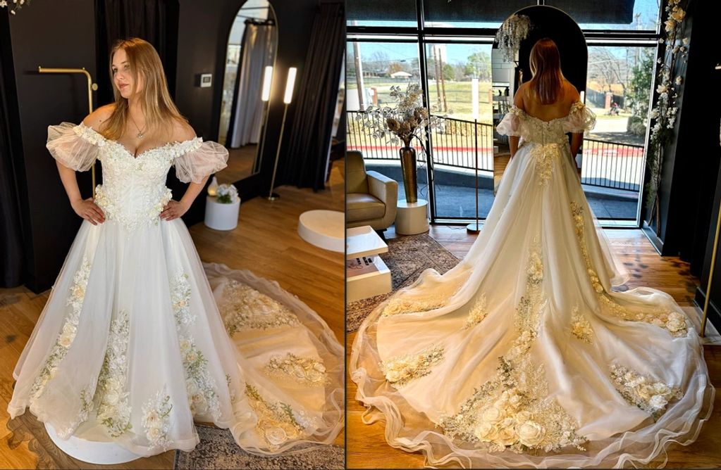 Inga’s exclusive gowns, available only at Only You Bridal, can’t be found anywhere else. Each piece features exceptional, one-of-a-kind craftsmanship, with every flower hand-sewn by the designer herself. Perfect for brides, quinceañeras, or mothers of the bride who want a bold, non-traditional look that truly stands out on their special day.
